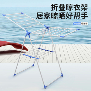 跨境工厂批发翼型晾衣架可折叠免安装阳台衣物晒衣架置地式晾晒架