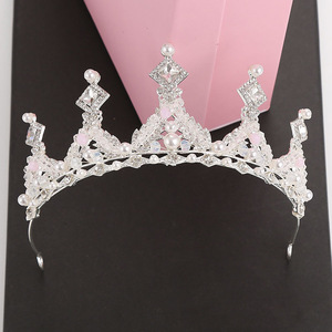 儿童皇冠公主水晶手工方块水滴皇冠头饰韩式仙美造型礼服王冠发饰