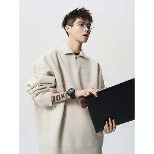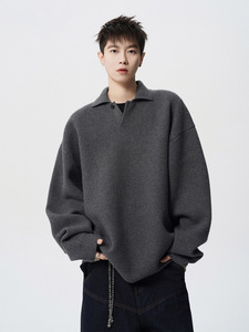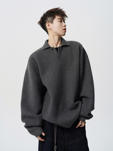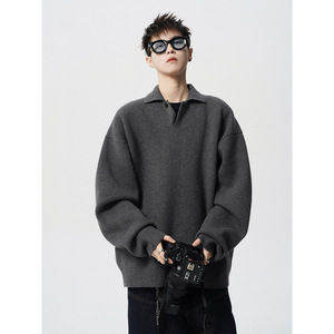 高级感POLO领毛衣男春秋季潮牌慵懒bf纯色针织衫美式百搭情侣上衣
