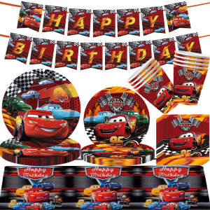 汽车总动员主题生日派对装饰用品一次性纸杯纸盘纸巾桌布餐具套装