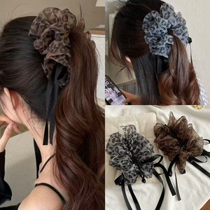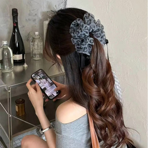 韩系蝴蝶结豹纹多层网纱香蕉夹2025新款高马尾固定半扎发夹头饰