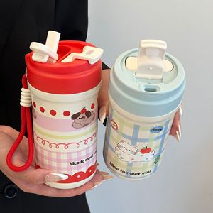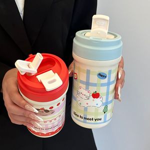 卡通316不锈钢咖啡杯可爱女生便携随手杯高颜值吸管双饮保温杯