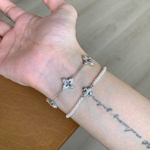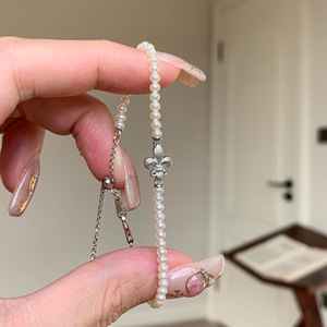 S925纯银鸢尾花珍珠手链女复古轻奢中古风小众设计小红书爆款手环