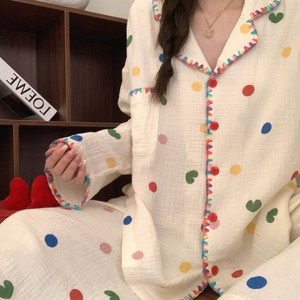 波点睡衣女春秋款长袖套装高级感韩版开衫家居服秋季可爱跨境批发
