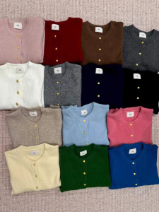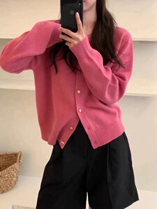 火爆小金扣圆领长袖针织开衫纯色韩系短款毛衣女外套上衣潮简约风