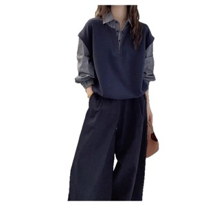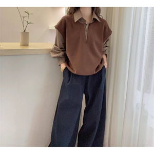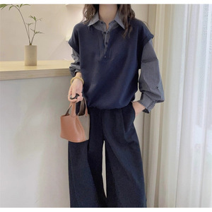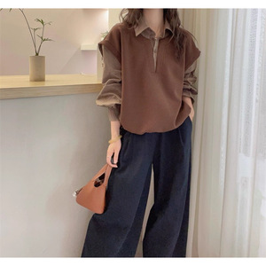 韩版宽松显瘦百搭休闲复古格子衬衫女假两件工装长袖外套衬衣上衣
