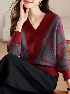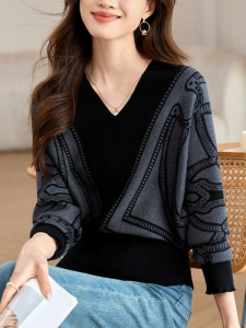 蝙蝠袖t恤女2025秋季新款气质v领短款宽松打底衫内搭针织长袖上衣