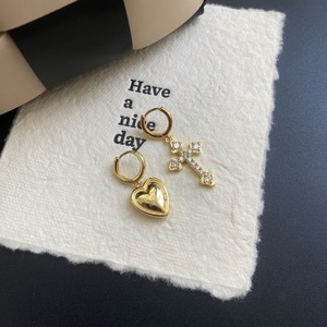 欧美时尚不对称爱心十字架耳环女复古轻奢小众设计高级感百搭耳饰