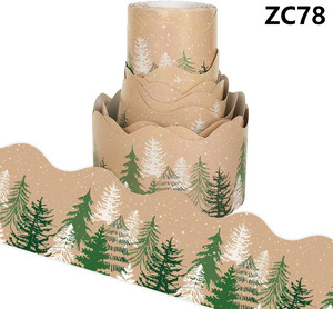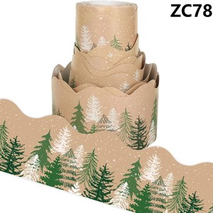 圣诞树公告板边框牛皮纸彩色水彩森林模切装饰边框卷黑板墙贴纸