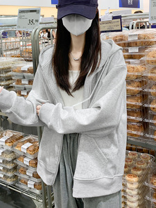 灰色连帽卫衣女秋季2025新款加绒宽松大码上衣开衫小个子拉链外套