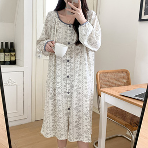 016262#复古花长袖睡裙