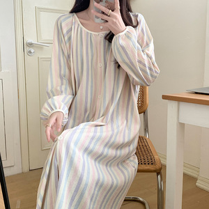 016269#彩虹条纹长袖睡裙