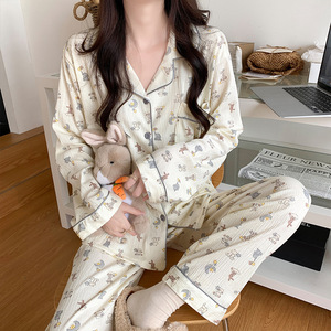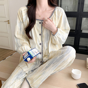 睡衣女款春秋季2025年新款纯棉夏天薄款长袖家居服套装大码可外穿