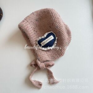 宝宝冬帽INS风撞色立体爱心包头帽儿童冬季保暖护耳帽
