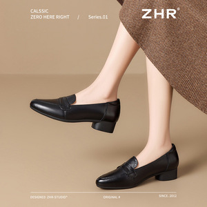 ZHR则则头层牛皮粗跟乐福鞋单鞋2025新款百搭真皮通勤小皮鞋女鞋