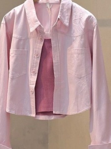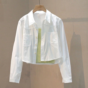 浅水蓝色衬衫工装外套女春秋长袖小个子防晒衬衣短款早秋chic上衣