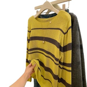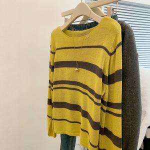 慵懒风圆领2025秋冬套头条纹针织衫毛衣女防晒罩衫长袖T恤空调衫