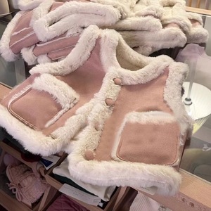 女童两面穿马甲秋冬款儿童时尚羊羔绒无袖背心宝宝甜美小香风耐用
