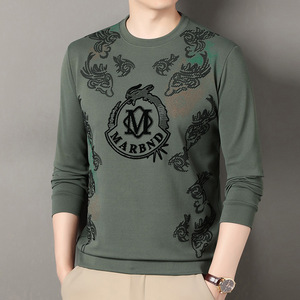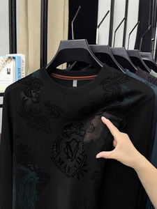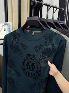 春秋季2025新款男士青年韩版圆领印花时尚休闲长袖植绒高品质卫衣