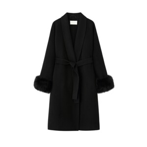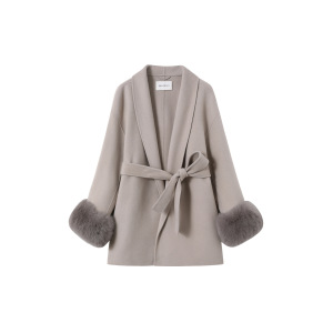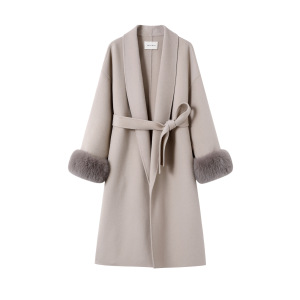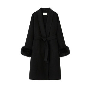 周淼ZHOUMIAO 100绵羊毛双面呢大衣女秋冬可拆卸真狐狸毛毛呢外套