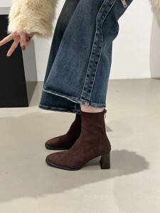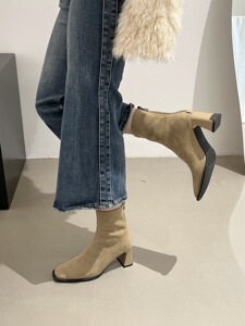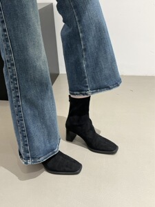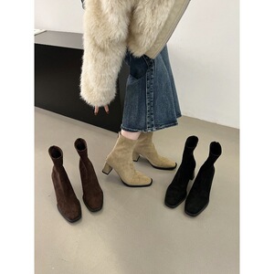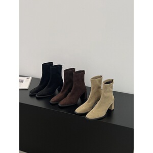 粗跟复古黑色绒面瘦瘦靴小短靴女鞋2025新款秋季百搭韩系小踝靴子