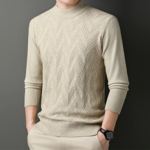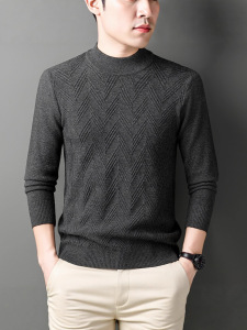 新款男士长袖半高领羊绒羊毛针织衫不起球不掉色不缩水质量保证,