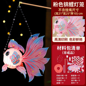 中秋节灯笼国潮金鱼灯手工diy材料包古风手提发光锦鲤花灯纸灯笼