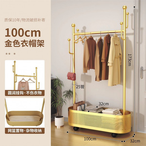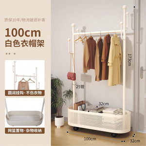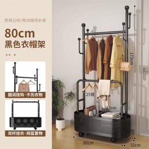 挂衣架落地家用卧室加粗加厚带轮可移动衣帽架阳台晾衣架挂衣架子