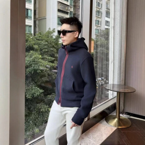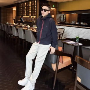 秋季新款潮流高品质男士休闲百搭时尚设计感图案刺绣连帽拉链卫衣