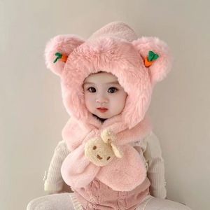 儿童帽子宝宝围巾一体秋冬季可爱超萌帽男女童加厚保暖护耳帽批发