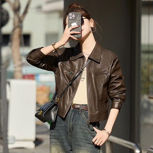 2025新款绵羊皮皮衣女时髦显高显瘦百搭机车服女士时尚翻领皮外套