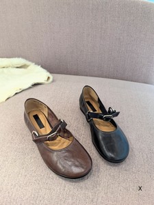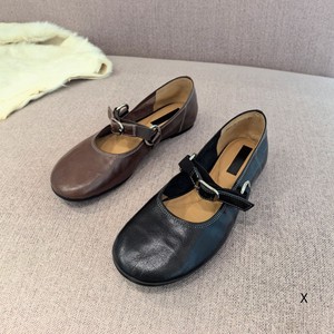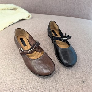 欧洲站XJ女鞋25秋冬时尚一字带软手抓纹胎牛皮圆头平底玛丽珍单鞋
