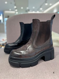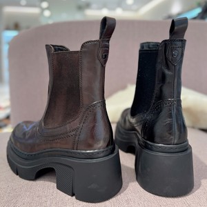 欧洲站XJ女鞋25秋冬时尚软手抓纹胎牛皮圆头松紧带套筒切尔西短靴