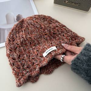 高品质出口日单100%羊毛原创设计纯羊毛马卡龙桔色堆堆帽子女秋冬