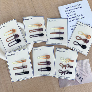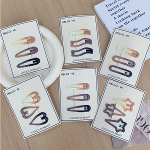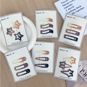 复古咖色渐变葱粉bb夹套装新款少女侧边碎发刘海夹爱心星星发夹女