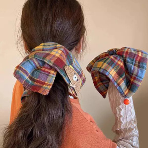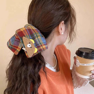 韩系彩色格子可爱小熊大肠发圈方巾格纹头绳甜美高弹力扎头发头饰