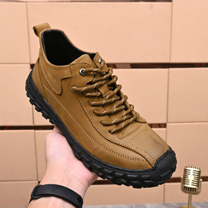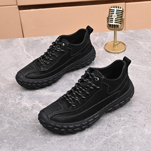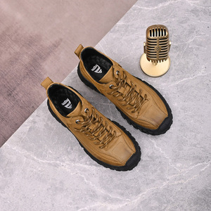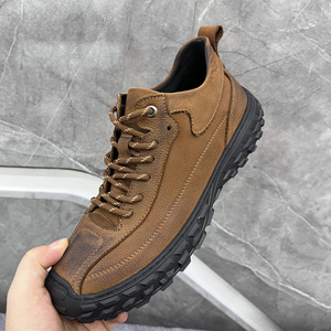 头层牛皮透气男鞋系带秋冬复古风户外运动休闲鞋时尚轮胎厚底男鞋