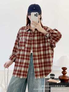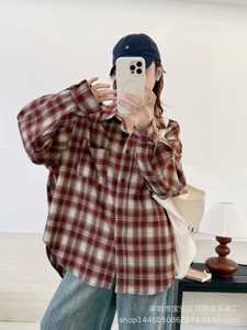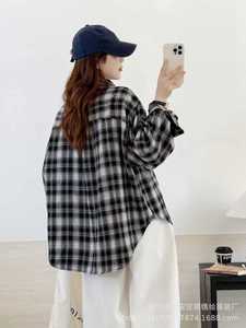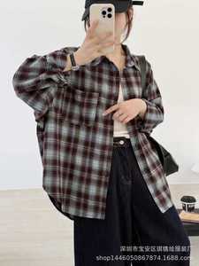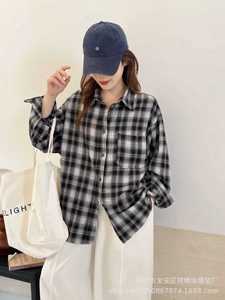 琪镌绘制磨毛格子衬衫女秋季新款宽松慵懒风休闲叠穿格纹长袖衬衣
