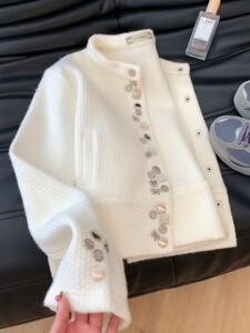 韩系软糯小香风毛衣外套女秋小个子别致短款温柔风白色针织开衫