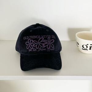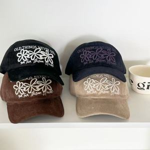 日韩复古灯芯绒花朵刺绣棒球帽小众甜美鸭舌帽子秋冬保暖学生男女