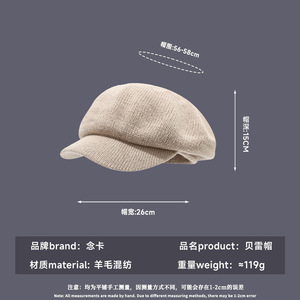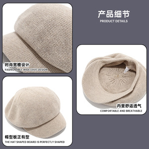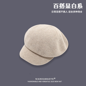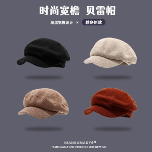 八角帽子女秋冬贝雷帽英伦复古百搭帽子女冬高级感百搭报童画家帽