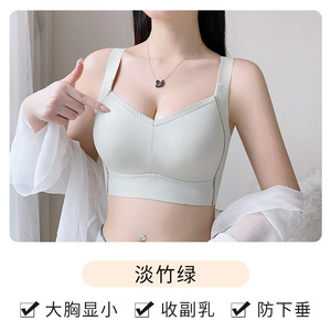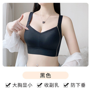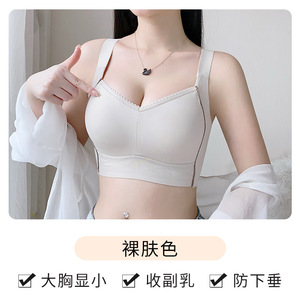 大胸显小薄款内衣女夏季无痕无钢圈大码文胸防下垂收副乳聚拢胸罩