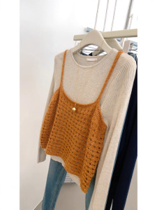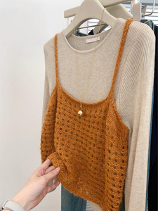 两件套橘色长袖针织衫薄款多巴胺上衣早秋氛围感穿搭长袖t恤7227
