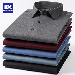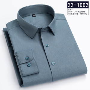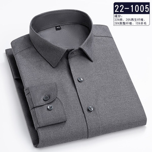 男士衬衫新款高档羊毛春秋纯色商务男装轻奢高级感衬衣男