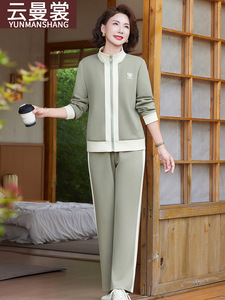 妈妈洋气套装秋装2025新款中老年女春秋运动服时尚外套上衣两件套
