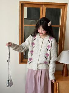 2025秋冬新款韩版宽松显瘦圆领提花针织衫毛衣女百搭外套上衣女装