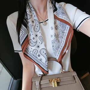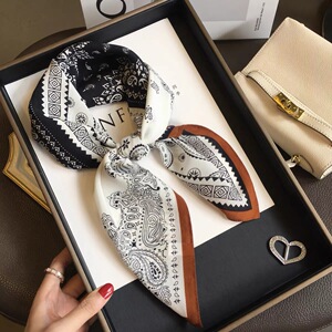 杭州丝绸老钱风腰果花仿桑蚕丝围巾70cm方巾春秋季百搭仿真丝丝巾