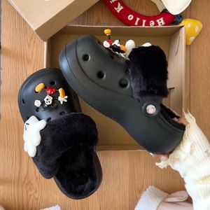 可爱卡通手套厚底包头棉拖鞋女款秋冬外穿防滑增高加绒保暖洞洞鞋