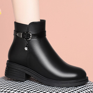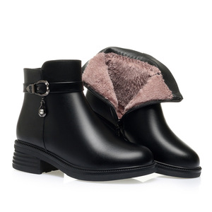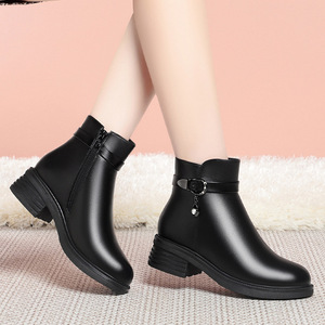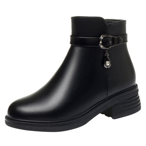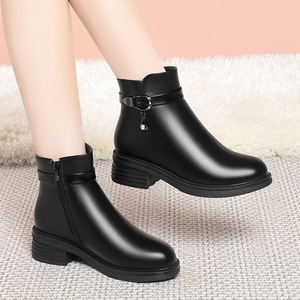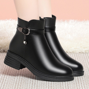 一件代发妈妈鞋秋冬季女靴粗跟短靴保暖棉鞋棉靴加绒皮鞋软底靴子
