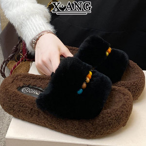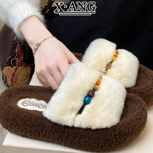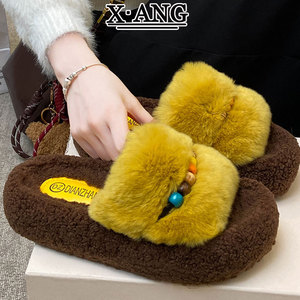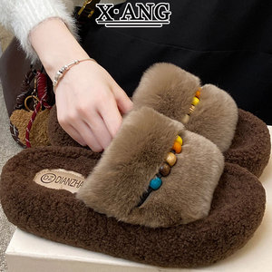 高级感真兔毛毛拖鞋女外穿2025秋冬季新款毛茸茸棉拖鞋厚底毛毛鞋